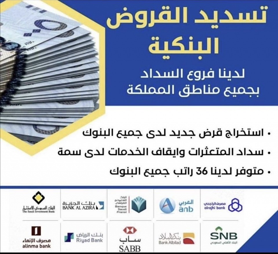 نقدم لكم مكتب تسديد القروض واستخرج قروض جديدة افضل الخدمات المضمونة والموثوقة لتخلصيكم من الديون المتراكمة عليكم ومساعدتكم في الحصول علي القروض الجديدة لسداد القروض القديمة